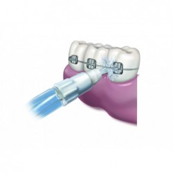 Boquilla indicada para la limpieza de los aparatos de ortodoncia y frenillos dentales. Elimina la placa difícil de alcanzar entre los brackets y alambres. También ayuda a eliminar las bacterias y los restos de comida de dientes y encías. Todo ello resulta en una mejora significativa de la salud de las encías de pacientes con ortodoncia.